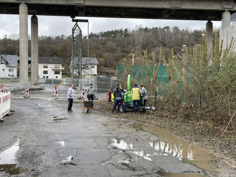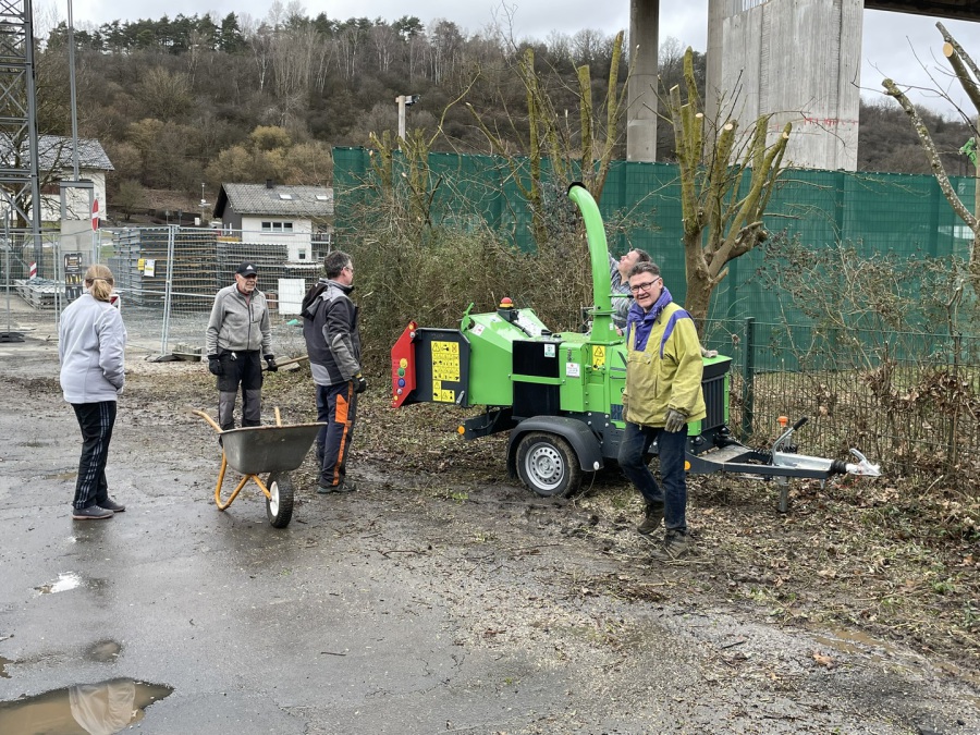 Ein großer Dank gilt den fleißigen Helfern, die trotz des unangenehmen Wetters tatkräftig mit angepackt haben. Das angefallene Schnittgut wurde direkt durch den von Achim Hofheinz zur Verfügung gestellten Häcksler verarbeitet.