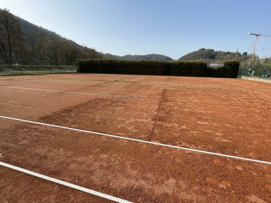 Auch in diesem Jahr werden die Tennisplätze wieder durch die Firma Nohe instandgesetzt. Die Firma Nohe hat bereits in der vergangenen Woche damit begonnen, die Grundlinien und T-Linien zu entfernen, damit sie ihren Maschinenpark vollständig einsetzen können.